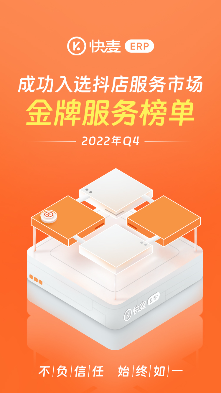 金牌服务榜单是抖店服务市场,根据过去一个季度服务的规模、效果、售后、违规情况等,对服务进行综合评分最终评选而来。快麦ERP荣耀登榜,正是其广受抖音直播商家喜爱的最好例证。